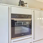 Denne ferielejlighed indeholder også et fuldt udstyret køkken.